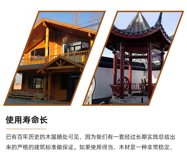 • 已有百年歷史的木屋隨處可見,因為我們有一套經過長期實踐總結出 來的嚴格的建筑標準做保證。如果使用得當,木材是一種非常穩定、 壽命長、耐久性強的材料。